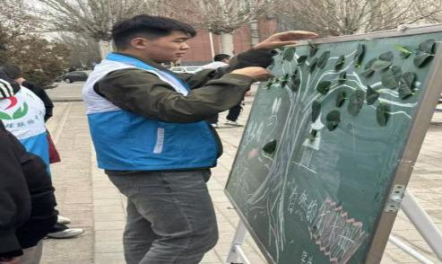 书写完毕后,同学们带着满满的期待,将承载着自己心意的树叶轻轻粘贴在黑板上。一片片树叶逐渐汇聚,形成了一棵枝繁叶茂、充满生机的 “愿望树”,成为校园里一道独特而温暖的风景线,引得路过的同学纷纷驻足欣赏、拍照留念。